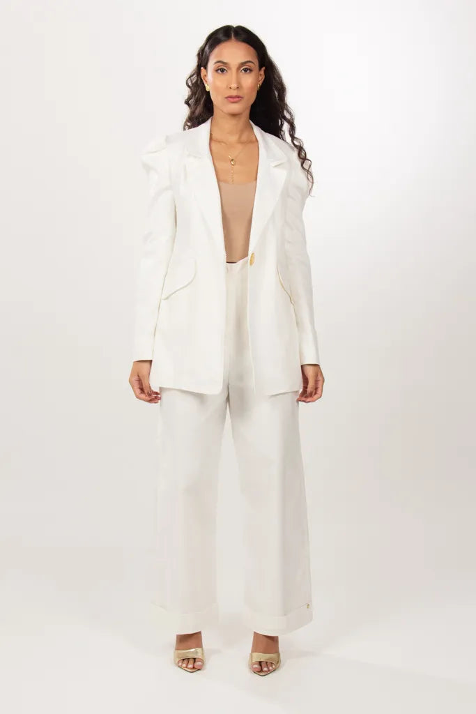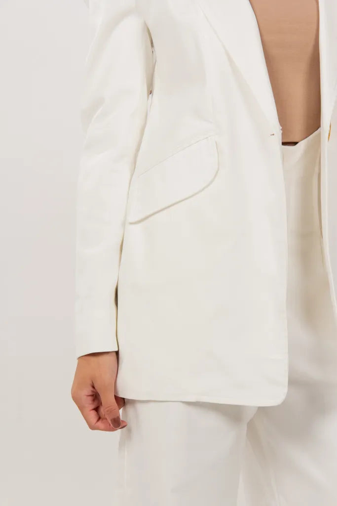Elegante, sofisticado e artesanal, o blazer de sarja branca é uma peça única para o seu guarda-roupa. Ideal para ocasiões especiais.