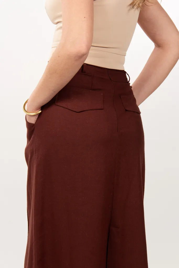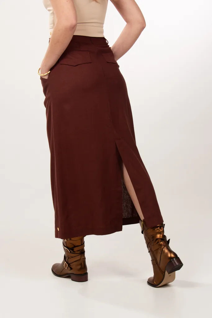 Long Straight Linen Chocolate Skirt